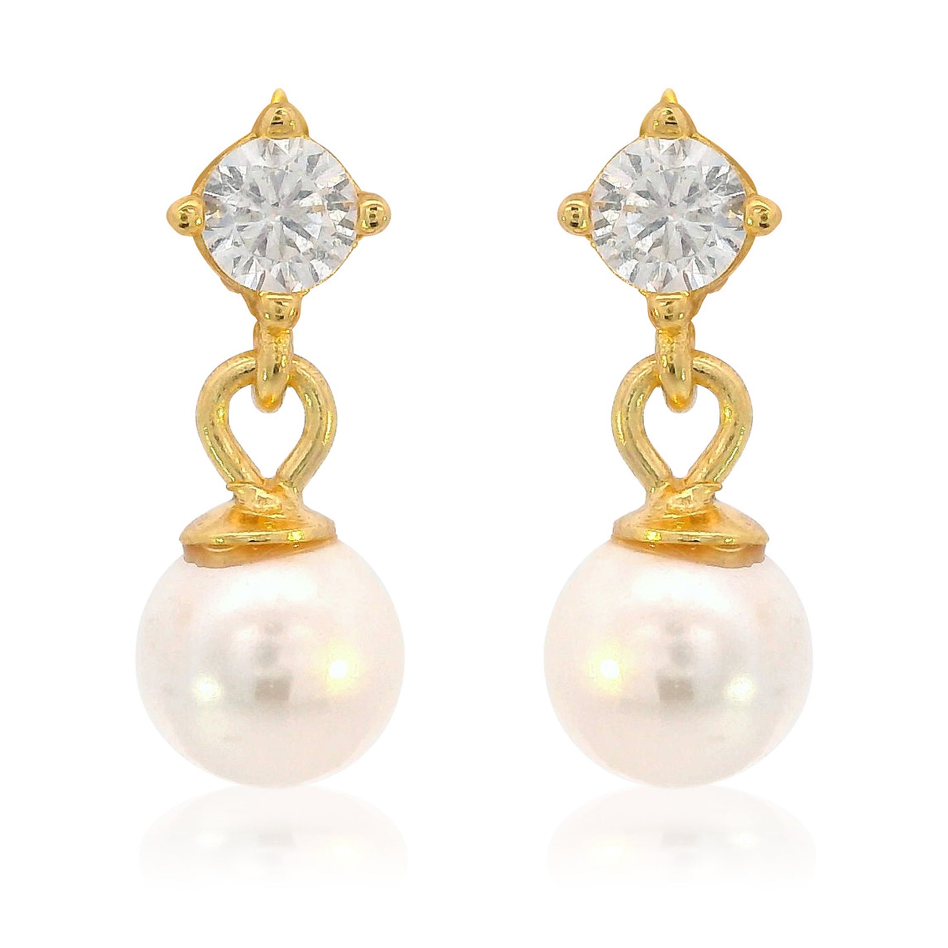 Each earring features a lustrous 5mm pearl suspended from a claw-set cubic zirconia that adds a dazzling touch of brilliance. Measuring approximately 12mm in length, they offer a sophisticated yet understated style that pairs beautifully with any outfit.
