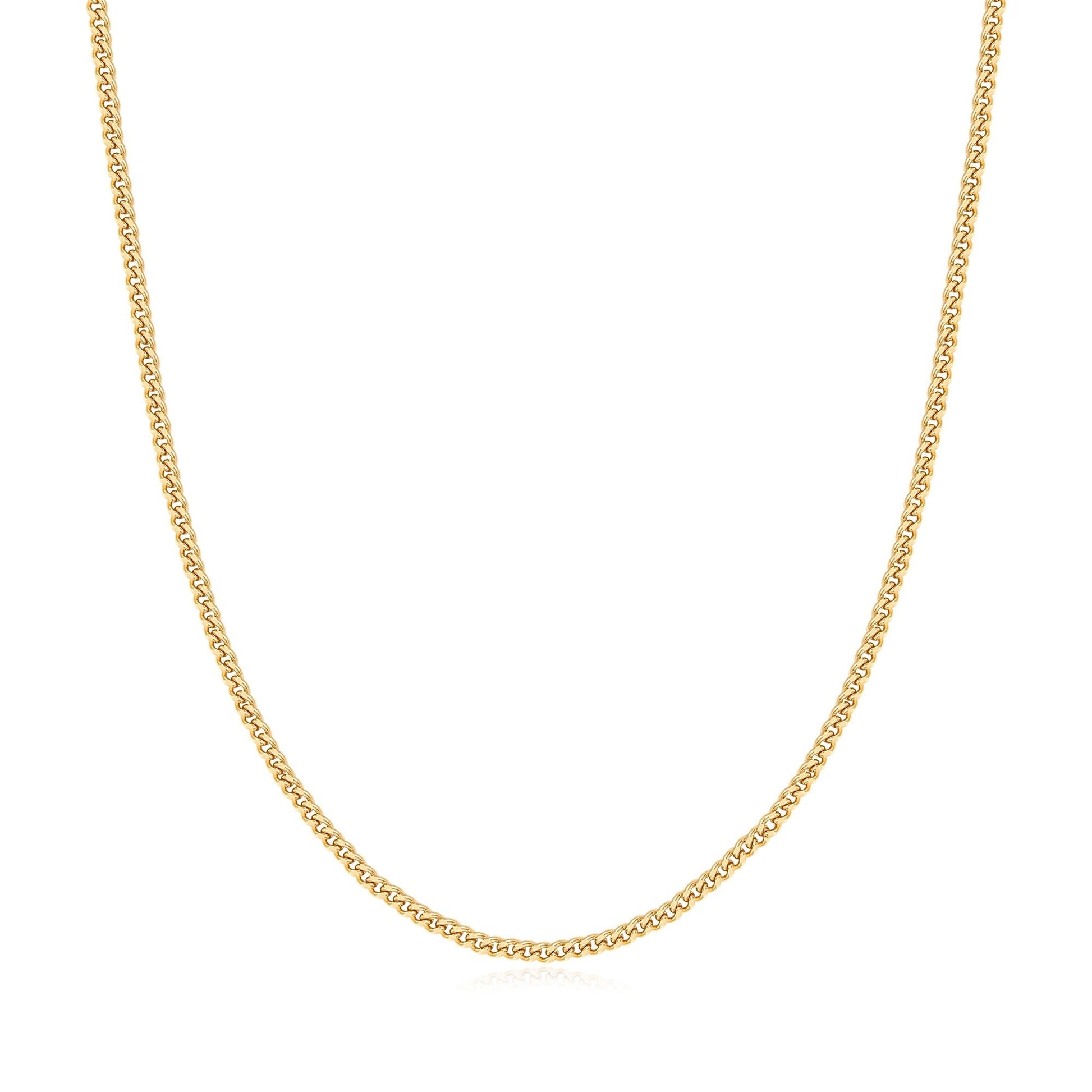 Adorn your neck with this classic piece of curb necklace. Crafted in 14kt gold-plated sterling silver, this can be your must-have in your wardrobe, perfect for mixing and matching with other statement pieces.