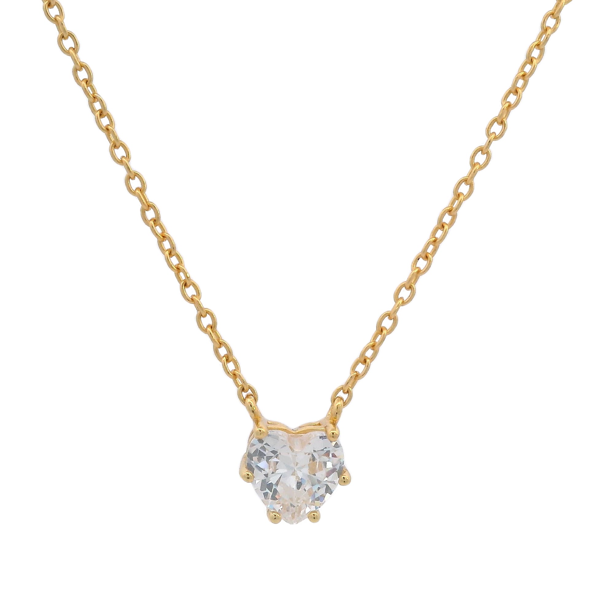 Crafted from 18k gold e-coated 925 sterling silver, this sweet necklace features a 6mm x 6mm sparkling cubic zirconia heart that catches the light with every move. It’s the perfect little token of love that’s as timeless as your feelings.