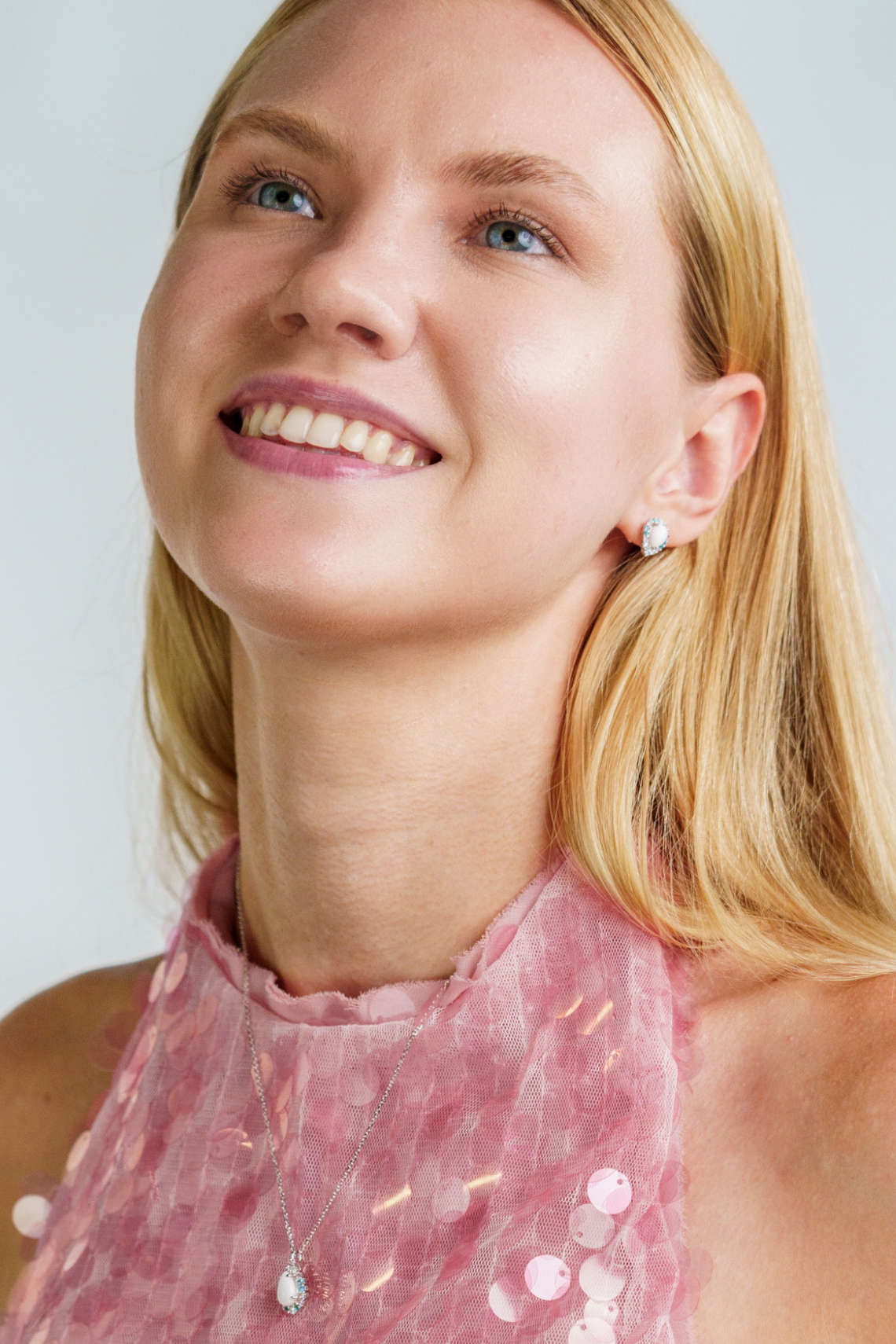 A sparkling halo of soft, multi-coloured stones dances around the opal, creating a magical burst of colour and light with every movement. Measuring approximately 11mm high by 8mm wide, they're the perfect size to make a statement while still feeling effortlessly feminine.