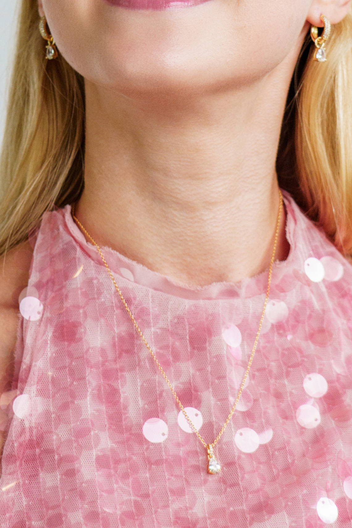 Meticulously crafted from lustrous 18ct gold e-coated 925 sterling silver, the Georgini Wisteria Pendant draws inspiration from the delicate beauty of nature. The radiant 7 x 5 mm pear-shaped cubic zirconia charm, evoking the soft curve of a flower petal. Suspended from a pave-set bail that sparkles like tiny blossoms, this pendant hangs gracefully from a 41 cm chain with a 4 cm extension. Perfect for layering or wearing solo, it brings a touch of natural elegance and timeless sophistication to every look.