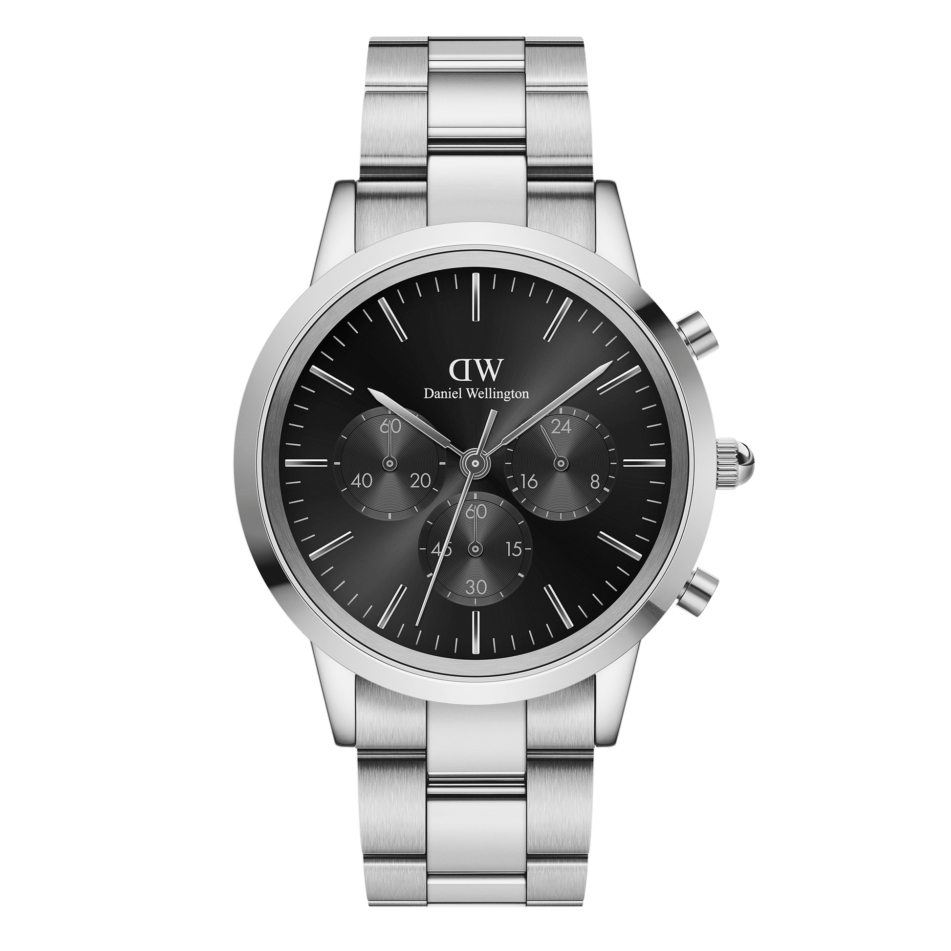 Daniel Wellington Iconic Chronograph 42 Link Silver & Black Sunray Watch