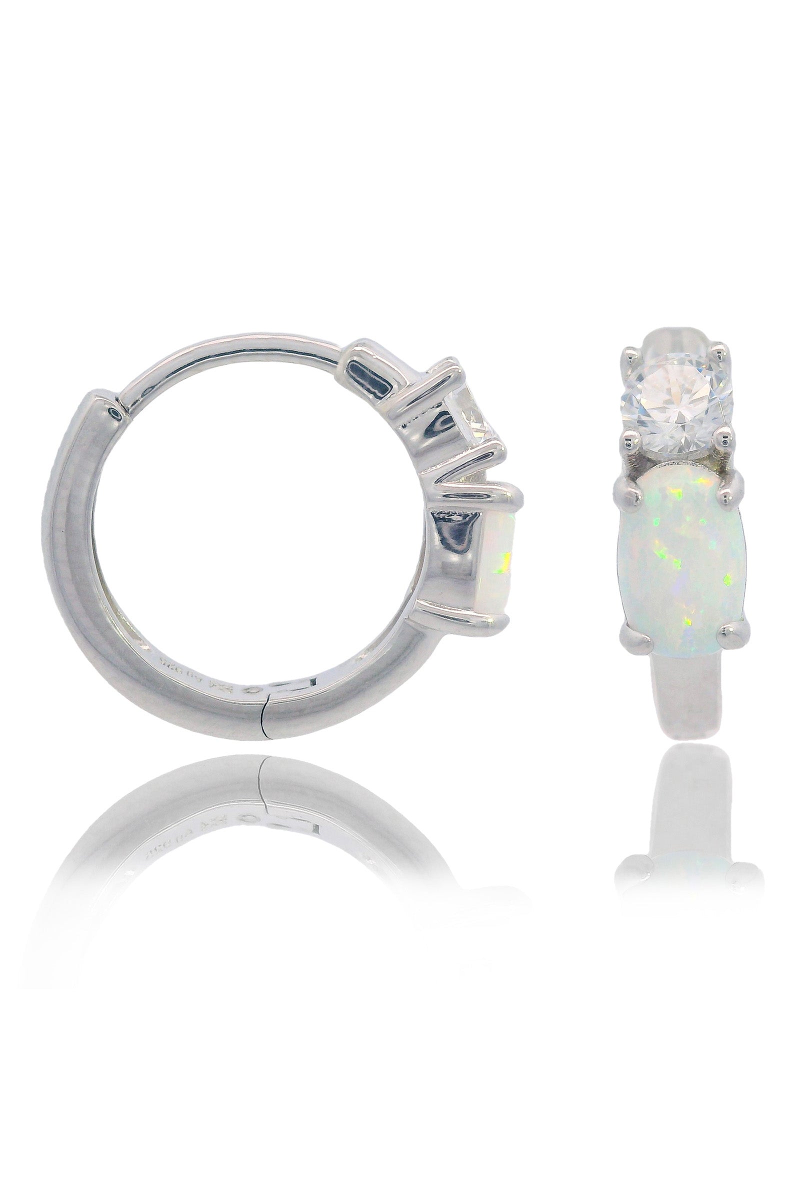 OPAL GLOW WHITE CREATED OPAL HOOP EARRINGS SILVER