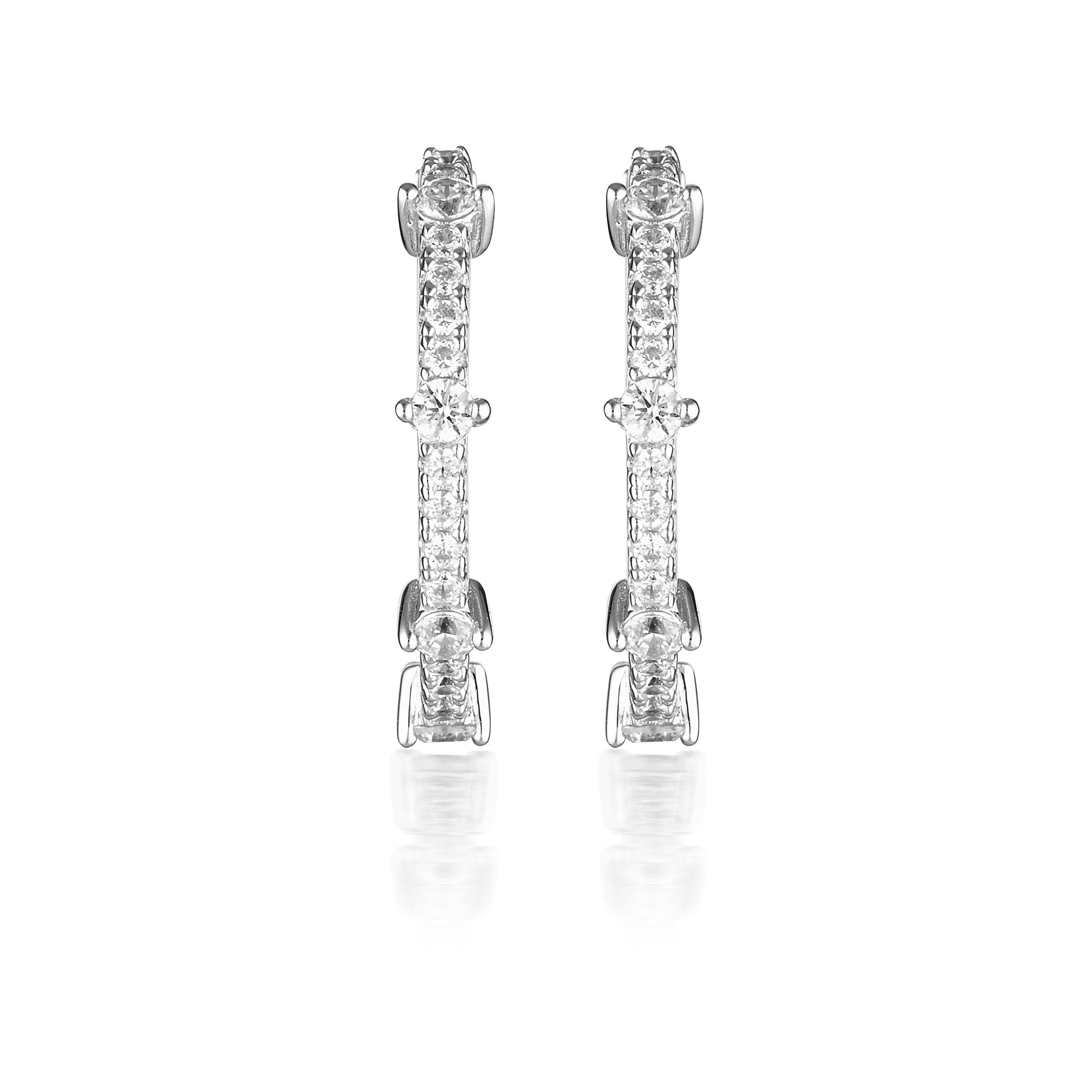 The Gala Earrings by Georgini are a sparkling mid-sized 20mm hoop featuring an array of brilliant Cubic Zirconia's. Perfect for any special occasion or as a desk to dinner option they match perfectly with the Gala Solitaire and Ring. They are crafted in luxurious Rhodium Plated 925 Sterling Silver. |