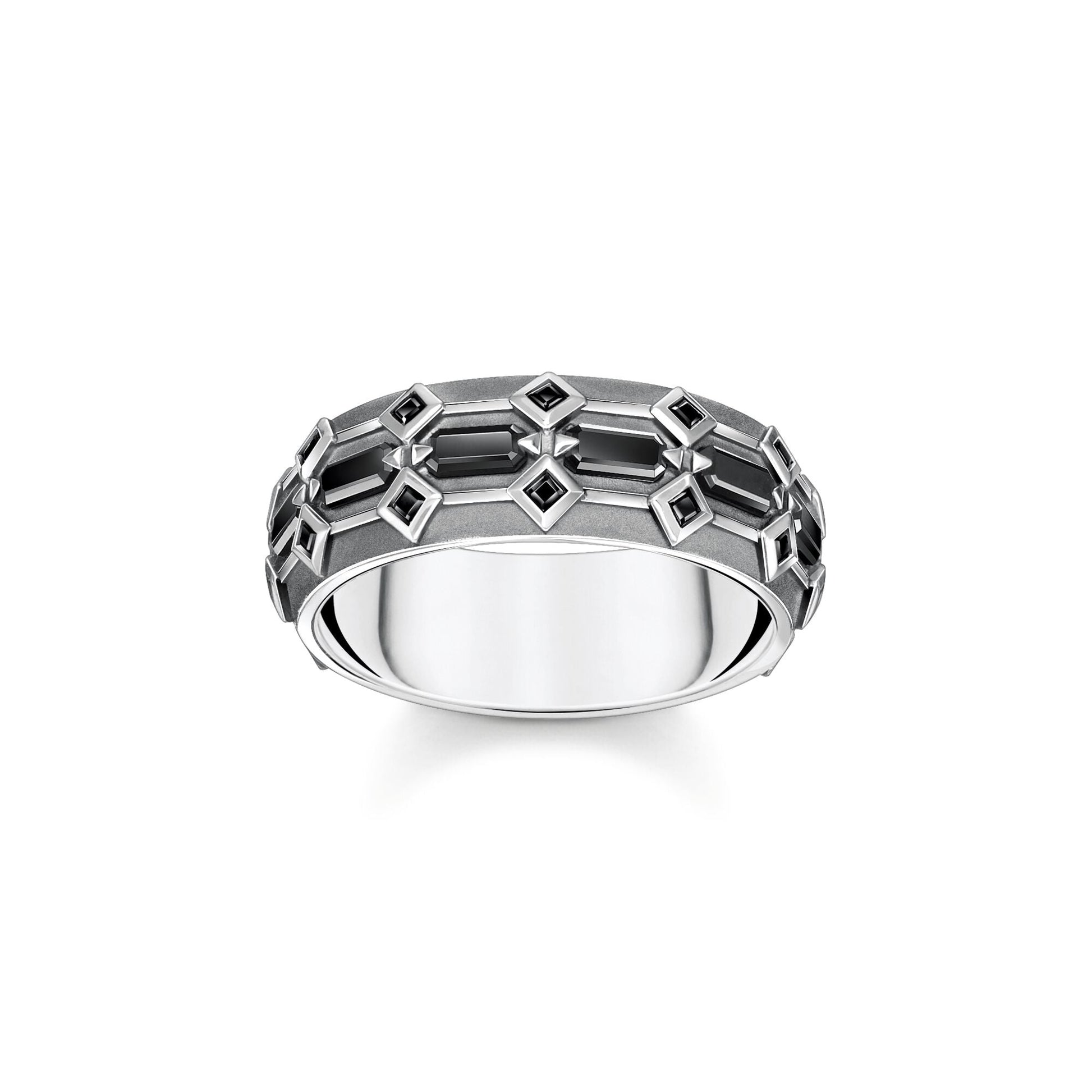 THOMAS SABO Ring Wide Crocodile Shell with Stones Silver Blackened
