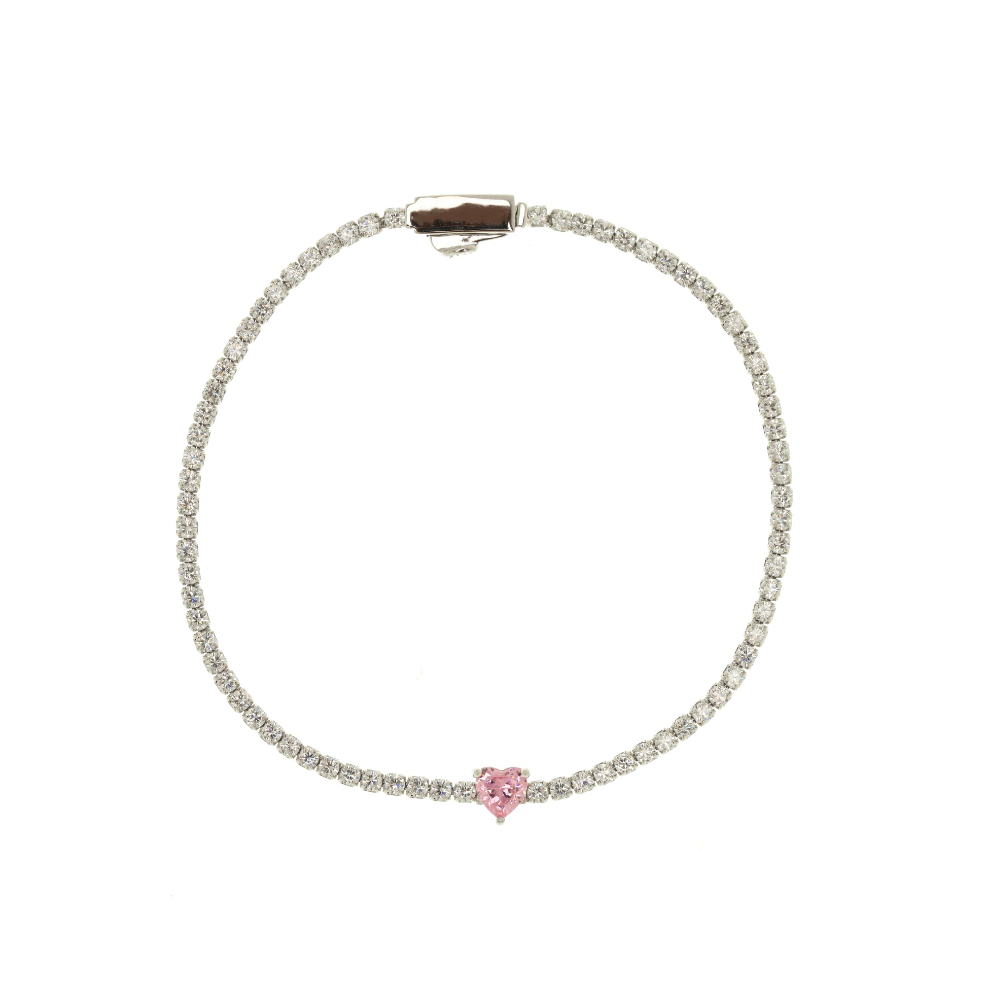 4. **Tennis Bracelet Design:** The timeless tennis bracelet design features a seamless row of glistening stones, providing an unbroken line of sparkle around your wrist. With the addition of the pink heart, this bracelet adds a touch of personality to the classic design, making it perfect for both everyday wear and special occasions.