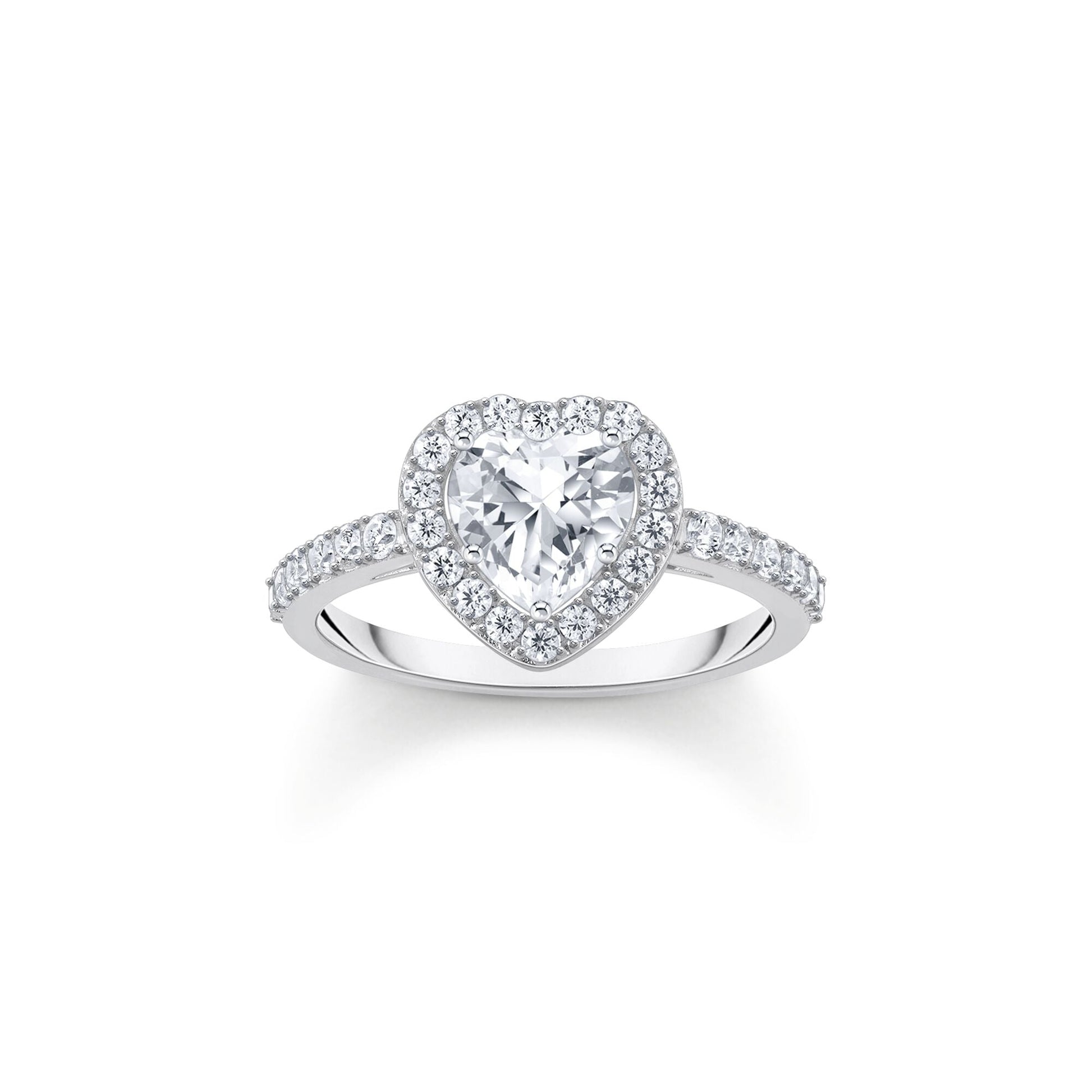 THOMAS SABO Halo ring with white, heart-shaped zirconia
