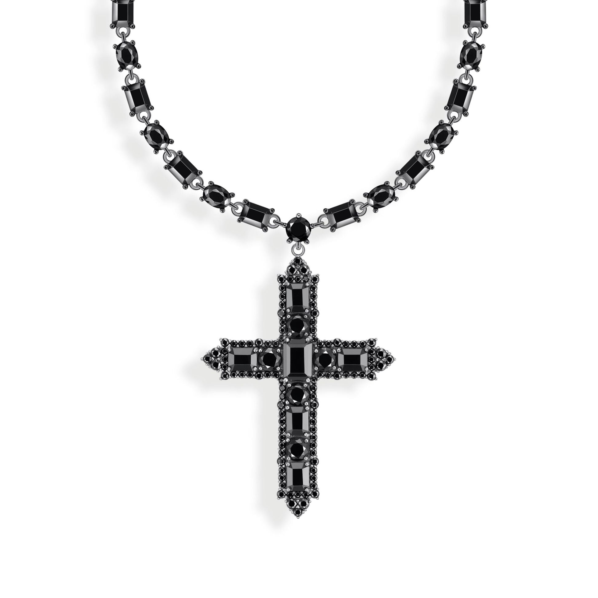 - Necklace and pendant with sparkling octagon-cut black zirconia stones and faceted oval and round zirconia stones