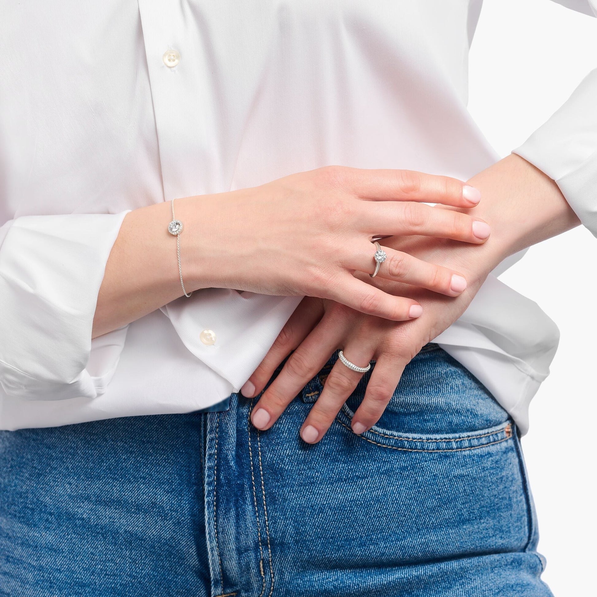 A sparkling, 3.5 mm wide ring pays homage to timeless beauty. Its design is firmly rooted in the essence of the THOMAS SABO brand: inspired by elegance and sophistication, fused with modern appeal. Wear and combine it according to your own feelings and desires.